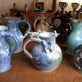 Il est fier de ses créations, "une poterie à vivre" et on y trouve de tout : des plats, des pichets, des théières, des boîtes (des boîtes un peu coquines parfois), des saladiers, des vinaigriers, des bols, des tasses, des ramequins.... des gargouilles et autres pièces tout aussi insolites.